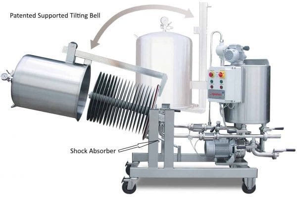 - Patented tilting design of the bell housing which slides open on a shaft and is supported with a shock absorber (not required on DCBL/50)